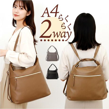 【瞬時に簡単アレンジ】ショルダーストラップをサイドに引くだけで、肩掛けからリュックへと簡単切り替え♪【シーンに合わせて使い分け】ビジネスからデイリーまで幅広く対応、上品な2WAYリュックショルダーバッグ。【A4も楽々な収納力】書類も13インチPCもすっぽり入る大容量設計で、通勤からお出かけまで頼れる相棒◎【上質な高見えバッグ】柔らかな手触りが魅力で、持つたびに上品な気分を演出してくれる。【取り出しやすい外ポケット】正面とサイドのファスナーポケットは、必要なものをサッと取り出せて便利〇【整理上手な内ポケット】内側にはファスナーポケットと2つのスリットポケットも備えて小物の整理も完璧。【軽やかな使用感】軽量設計で長時間の持ち歩きも快適、毎日のお供に最適なバランス!
