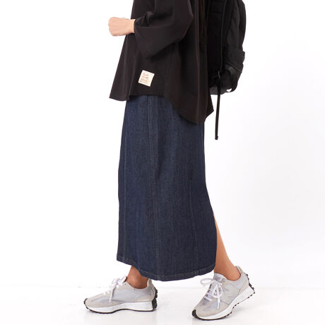 ストレッチデニムを使用した、シルエットに丸みのあるカーブスカートです。