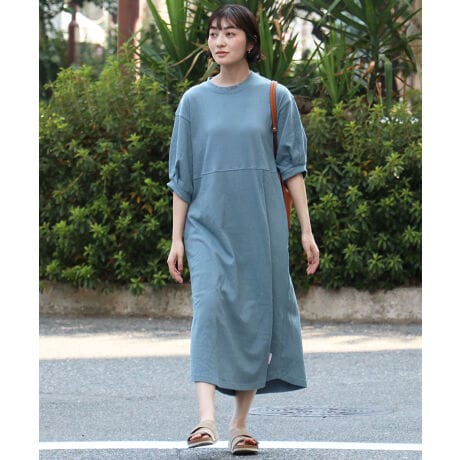 楊柳調のシボ感が魅力の、さらっと軽やかに着られるカットソーワンピース。