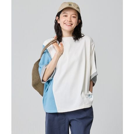 ゆったりなのにスッキリ見えを両立した、猛暑に体型を気にせず自信を持って歩けるリラックスドルマンTです。