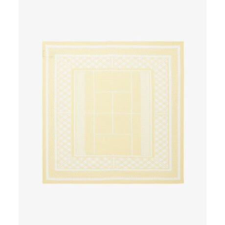 [型番:RE1507-99]テニスコートのグラフィックを品よく描いたスクエアスカーフ・レーヨン仕立ての流れるようなウーブン素材・テニスコートをモチーフにしたプリントデザイン・90×90cmのスクエアフォーマット・右下にワニロゴパッチを配置