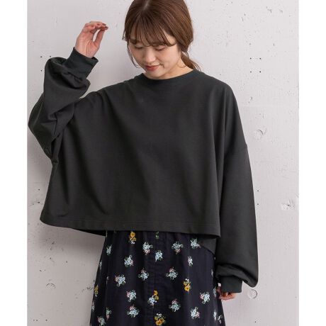 ボリューム感のある袖とショート丈のバランスがポイントのプルオーバー。カットソーの気軽さとスウェットの程よい厚みを兼ね備えた、ミニ裏毛素材を使用しました。ゆとりのあるアームホールが抜け感を演出し、身体のラインを拾いにくいリラックス感のあるシルエットも魅力。