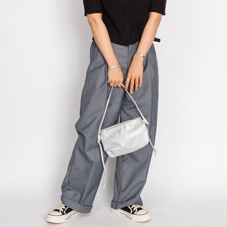 軽くて柔らかい合皮を使用しているので体に添いやすく馴染みやすいショルダーバッグ。
