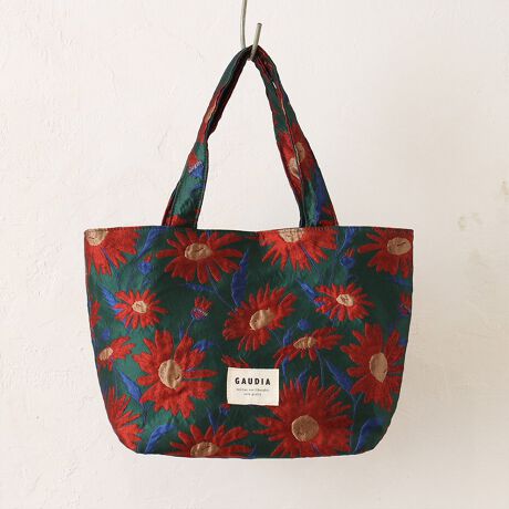 立体的なフラワー刺繍が全面に施された、華やかなバッグです。