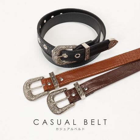 スカルプチャーバックルクロコ柄ベルト