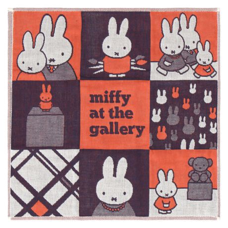 美術館を楽しむミッフィーのデザインがかわいい3重ガーゼハンカチ。