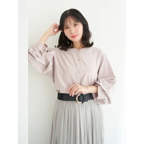 袖2WAYのアレンジが楽しめるキレイめノーカラーシャツ