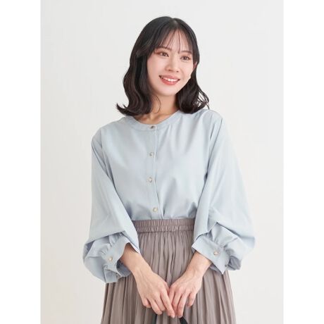 袖2WAYのアレンジが楽しめるキレイめノーカラーシャツ