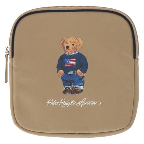 アイコニックのポロベアプリントがアクセントのハンカチケース。マチがあるフォルムはハンカチに添えるギフトとしてもおすすめです。環境に配慮した再生ポリエステル繊維を使用しています。