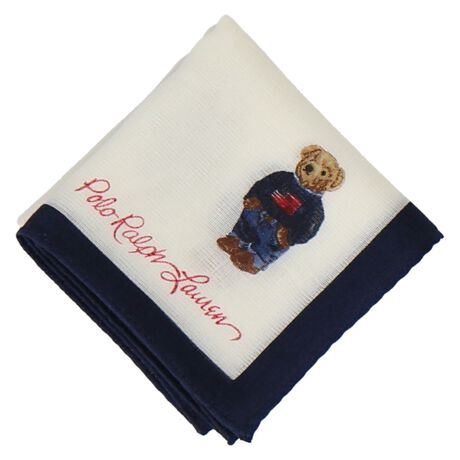 アイコニックなポロベアが全面にプリントされたデザインのミニサイズハンカチ。