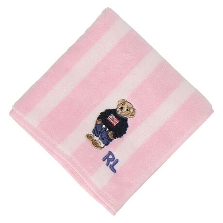 洗練されたストライプデザインにアイコニックなポロベアの刺繍がアクセントになったタオルハンカチ。