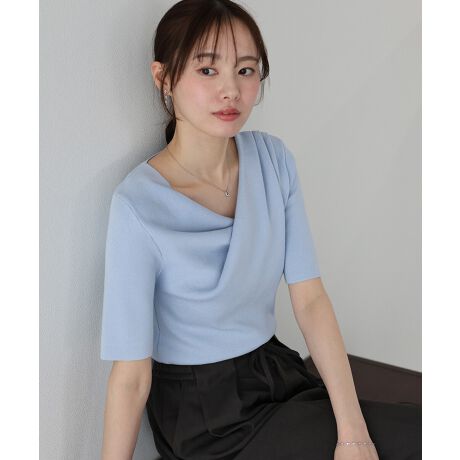流れるようなドレープ感たっぷりのネックラインが上品なニット。