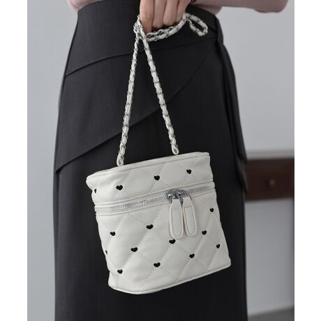 ハート刺繍×キルティングが大人かわいいチェーンバニティーバッグ