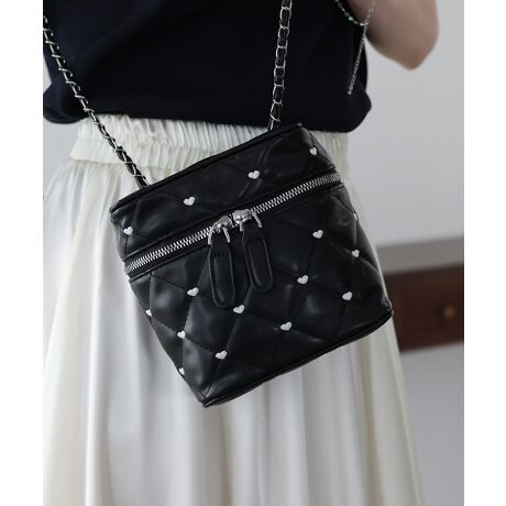 ハート刺繍×キルティングが大人かわいいチェーンバニティーバッグ