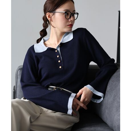 バイカラーで魅せる、モードなポロニットプルオーバー