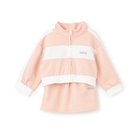 配色の切り替えでスポーティーに仕上げたトラックジャケットとスカートのセットアップです。