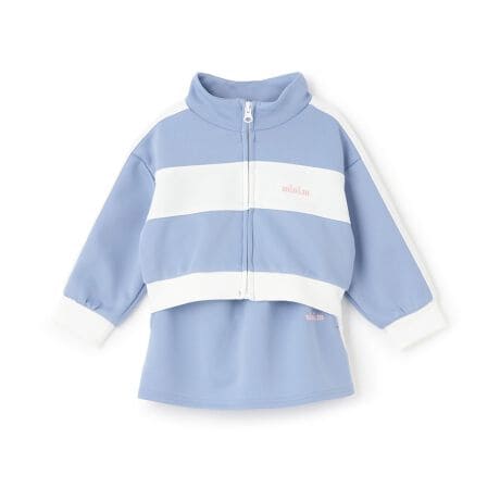 配色の切り替えでスポーティーに仕上げたトラックジャケットとスカートのセットアップです。