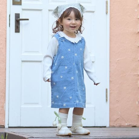 お花の刺しゅうをちりばめた可愛らしい雰囲気のジャンスカです。