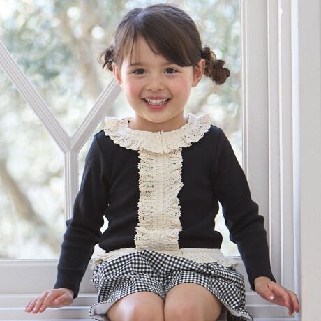 大胆にあしらったレースフリルが華やかな印象を与えるTシャツです。