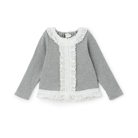 大胆にあしらったレースフリルが華やかな印象を与えるTシャツです。