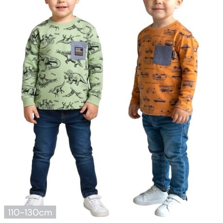 ダイナミックに描かれた恐竜たちが迫力満点の総柄の2タイプの柄から選べる長袖Tシャツです。