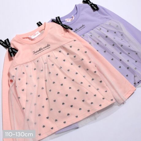 ハート柄の上にチュールがふわっと揺れて、ナチュラルで愛らしい雰囲気に。