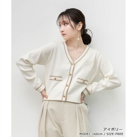 デニムパンツを合わせてカジュアルにも、スカートでフェミニンにも幅広く使える万能カーディガン。