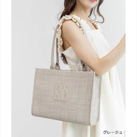フロントのモノグラムモチーフが印象的なトートバッグ。