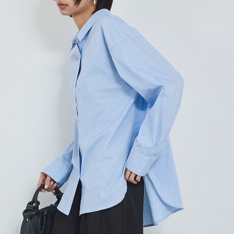 ドロップショルダー、ゆったりした身幅でリラックス感のある着心地を叶えるオーバーサイズシャツ。程よい長さのラウンドヘムとバックのボックスプリーツで動きのあるシルエットに。柔らかさもあるので重ね着にも最適で着回し力抜群です。透けにくくさらりとした素材感は季節を問わず大活躍します。袖口に2つボタンを配し、調整可能なデザイン。