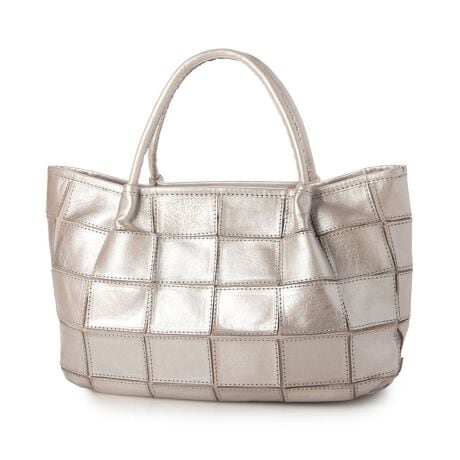 四角くカットされたレザーパーツを丁寧にパッチワーク状に縫製をした、素朴でありながらも洗練された表情のバッグです。