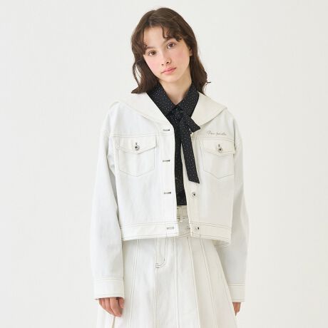 セーラーカラーが印象的なデニムジャケットです。