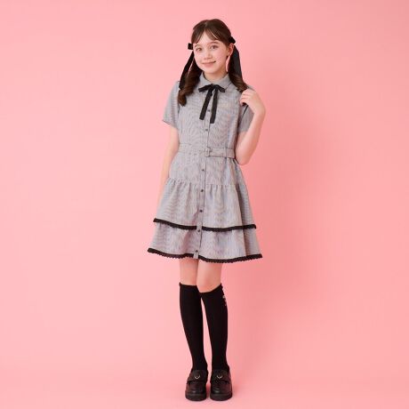 シャツデザインにティアード切り替えをほどこしたミニワンピースです。