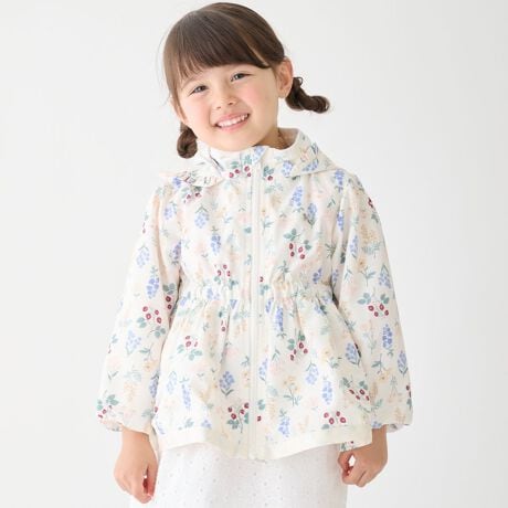 裾に広がるペプラムシルエットが女の子らしい印象のウィンドブレーカーです。