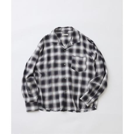 裾のフリンジがアクセントの、オンブレチェック開襟シャツ。