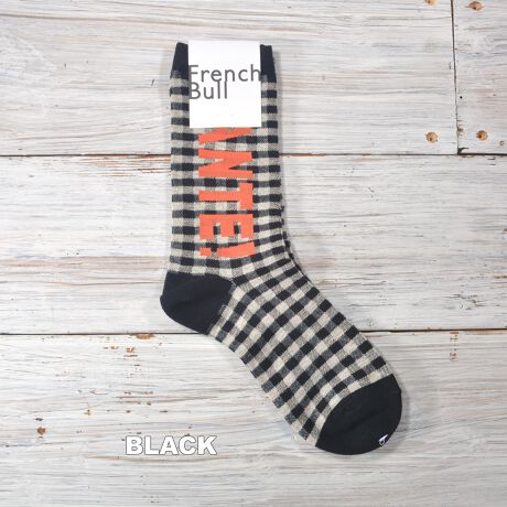 テーブルに敷かれたギンガムチェック柄のクロスに、「SANTE!」と乾杯の掛け声が聞こえてくる宴のワンシーンをイメージした柄のソックスです。ベースは綿麻糸と綿糸を使用し、薄手に編み立てました。コーディネートの主役におすすめの1足です。