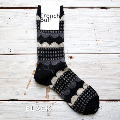 レース柄とチェック柄を全体にあしらった、ジャガード編みのソックス。ベースはガス焼き処理により毛羽を抑えたシルケットの綿糸で、程良い厚みに編み立てました。コーディネートのアクセントになる1足です。