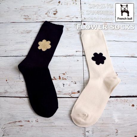 お花のワンポイント柄のソックスです。光沢感のある綿シルケット糸で、程よい厚みに編み立てました。 花柄は片側をゴールドのラメ糸で、もう片側をモノトーン色に編み分け、 左右で見えるカラーと印象を変えて楽しめます。コーディネートのアクセントになる1足です。
