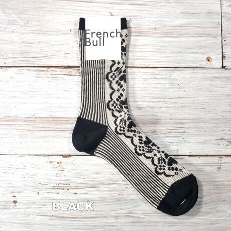 パーティーの華やかな光景をイメージした柄のソックスです。光沢感のある綿シルケット糸で、程よい厚みに編み立てました。前後で変わる柄が足元のポイントに。シックな配色でコーディネートに合わせやすい1足です。