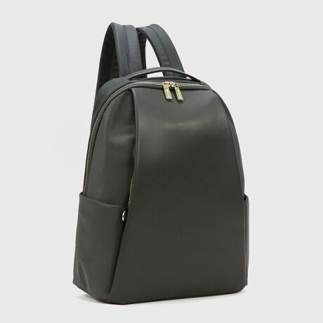 ・カジュアルになりがちなリュックを、落ち着いたトーンと素材感できれいめな印象に仕上げました。