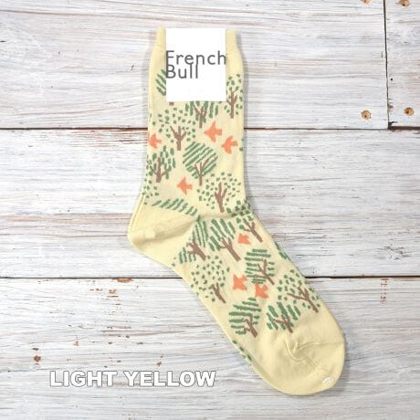 森と渡り鳥をイメージした柄のソックスです。ベースはガス焼処理により毛羽を抑えたシルケットの綿糸で、薄く編み立てました。ナチュラルなタッチの柄と柔らかなトーンの配色が、コーディネートのポイントになる1足です。