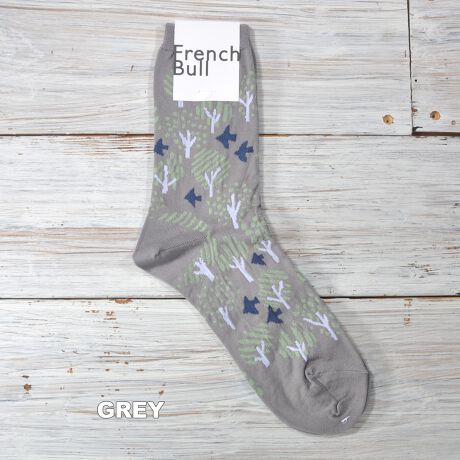 森と渡り鳥をイメージした柄のソックスです。ベースはガス焼処理により毛羽を抑えたシルケットの綿糸で、薄く編み立てました。ナチュラルなタッチの柄と柔らかなトーンの配色が、コーディネートのポイントになる1足です。