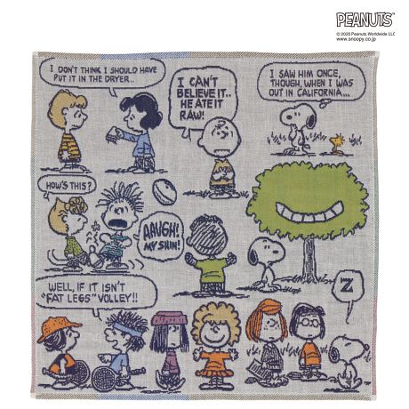 スヌーピーや仲間たちがデザインされた3重ガーゼハンカチ。プレゼントにもおすすめです。