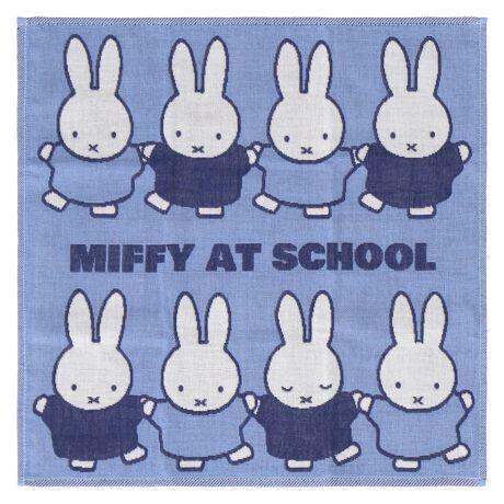 ミッフィーとがっこうのお友だちが仲良く並んだ3重ガーゼハンカチ。