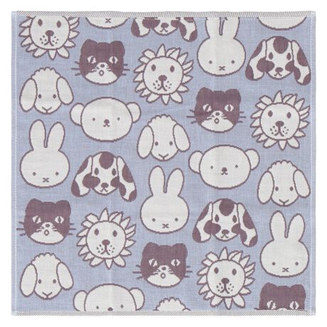 ミッフィーやボリス、どうぶつたちのフェイス柄がかわいい3重ガーゼハンカチ。