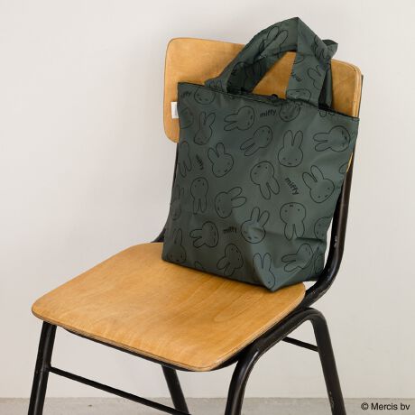 使いやすい落ち着いた色合いの、ミッフィーの総柄がかわいいエコバッグ。くるりと折りたたんでお買い物にもお出かけのサブバッグにもおすすめ。ファスナー付きでお出かけにも安心の仕様で仕上げました。