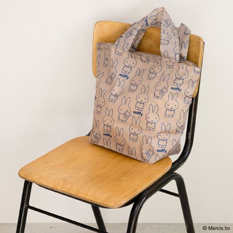 使いやすい落ち着いた色合いの、ミッフィーの総柄がかわいいエコバッグ。くるりと折りたたんでお買い物にもお出かけのサブバッグにもおすすめ。ファスナー付きでお出かけにも安心の仕様で仕上げました。