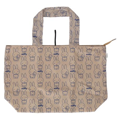 使いやすい落ち着いた色合いの、ミッフィーの総柄がかわいいエコバッグ。くるりと折りたたんでお買い物にもお出かけのサブバッグにもおすすめ。ファスナー付きでお出かけにも安心の仕様で仕上げました。