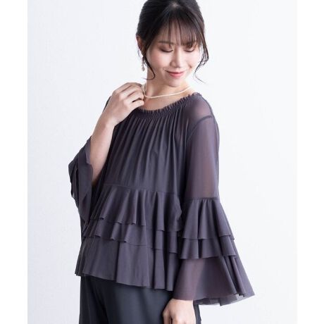 重なり合うフリルが、腕の動きに合わせてやさしく揺れ、腕まわりをすっきりと見せてくれます。