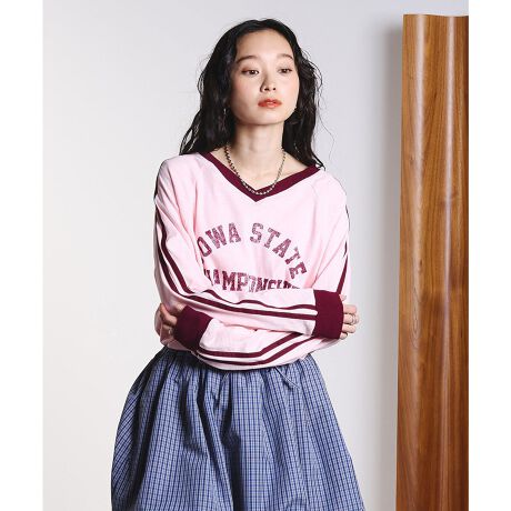 配色が効いていながらも、やさしいカラーなので意外と合わせやすい長袖Tシャツです。