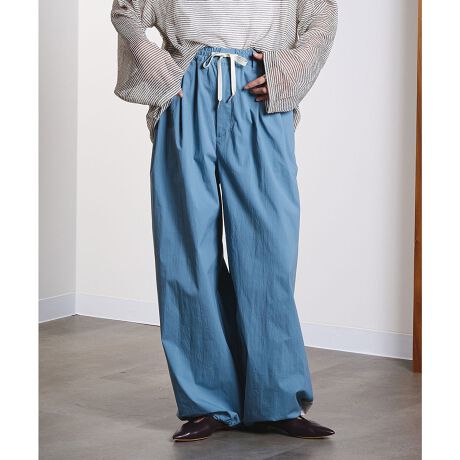 配色のウエスト紐を見せたスタイリングもおすすめで、抜け感のある大人カジュアルが楽しめる一本です。